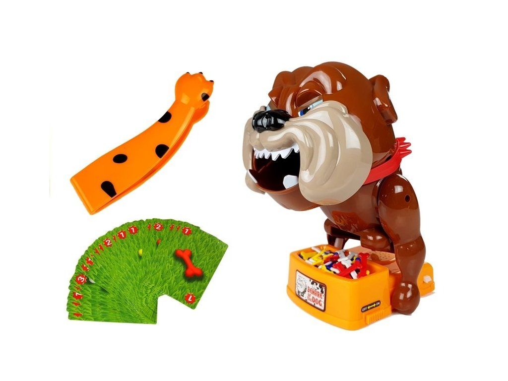 Rozložte všechny karty na stůl a vložte kosti do misky naštvaného psa. Poté kosti pomalu a opatrně vytáhněte podle barvy a množství zobrazeného na kartě. Hru provádějte opatrně, aby se naštvané zvíře "neproudilo".