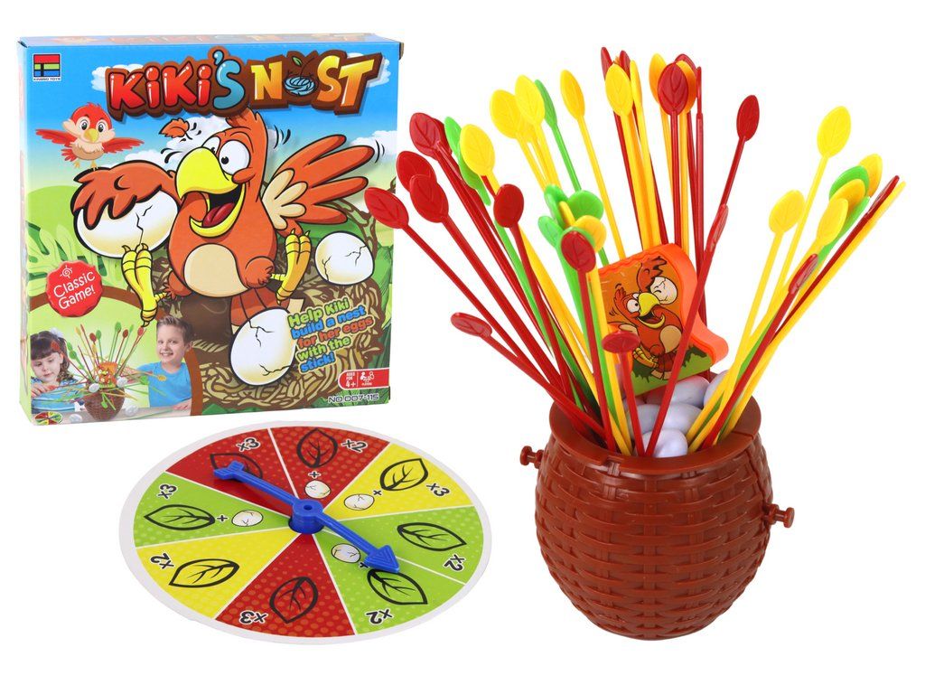 Cílem hry je postavit kuřátku Kiki hnízdo z barevných tyčinek a vajíčka umístit bezpečně na hnízdo, aby nespadla a byla v bezpečí. Ten, kdo jako první použije všechna vejce a bezpečně umístí kuře Kiki, vyhrává!
