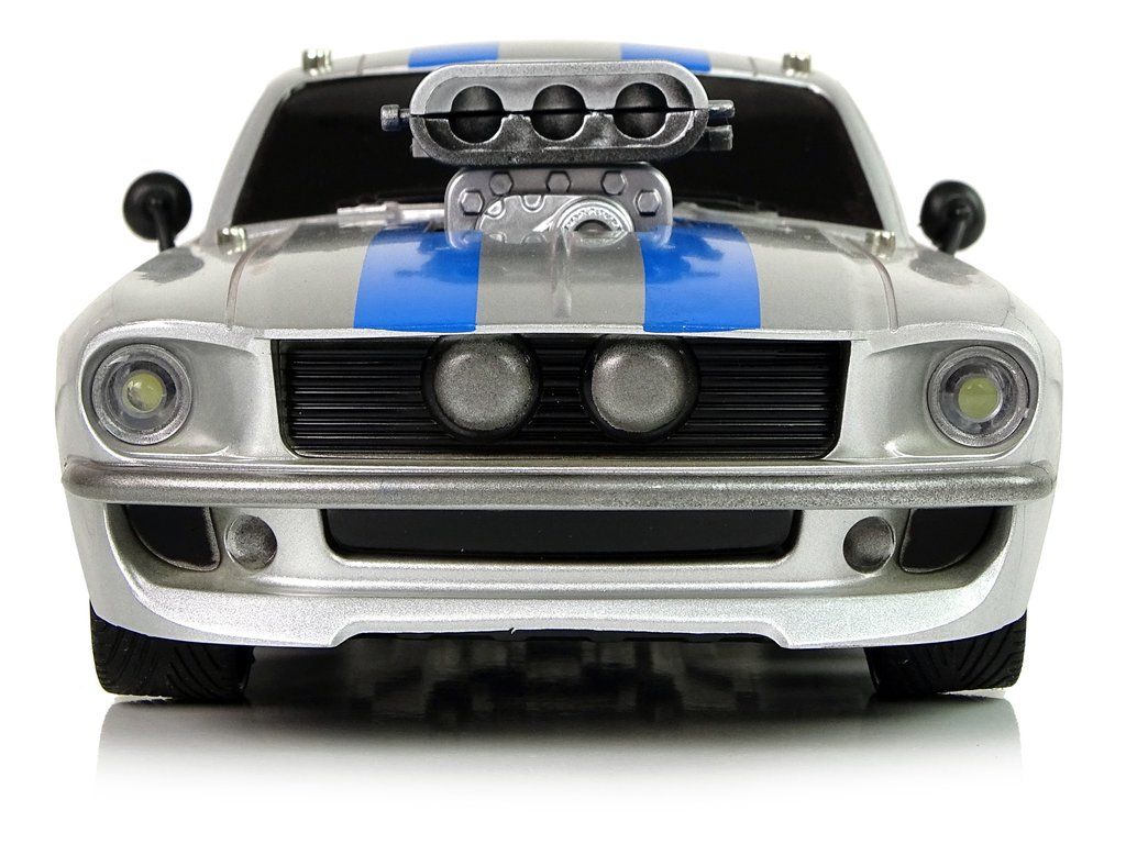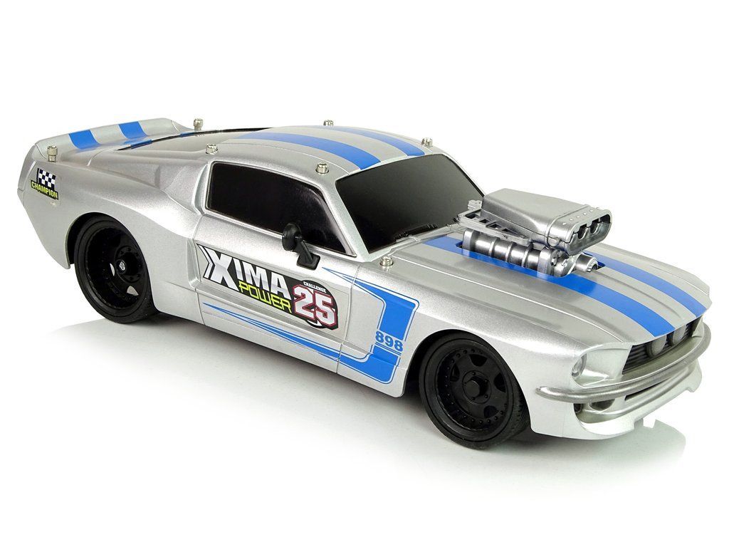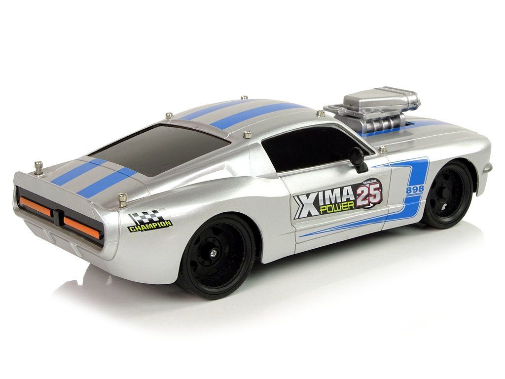 Sportovní auto má lehkou a robustní konstrukci, sportovní design se dvěma modrými pruhy na střeše a stříbrný kompresor na kapotě vozu. Gumové pneumatiky zaručují přilnavost k zemi při řízení vozu.