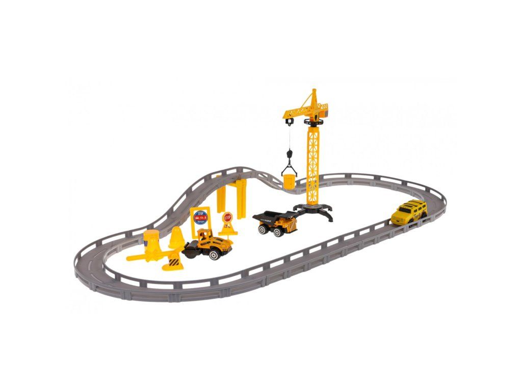 Dobře vybavená autodráha se stavebními autíčky a jeřábem pro děti od 3 let. Sada se skládá z 21 samostatně sestavitelných dílů. Je vyrobena z plastu nejvyšší kvality. Autodráha je vybavena zábranami chránícími autíčka před pádem. Jeřáb má pohyblivé prvky, jako je rameno otáčející se o 360 stupňů a spouštěcí hák (ruční klika). Součástí sady jsou 3 stavební autíčka, jako je sklápěč, válec a elektrické autíčko. Sklápěč a válec mají kovovou karoserii a pohyblivé části. Válec má pohyblivý a otočný buben a sklápěč má zvedací a spouštěcí přívěs.
