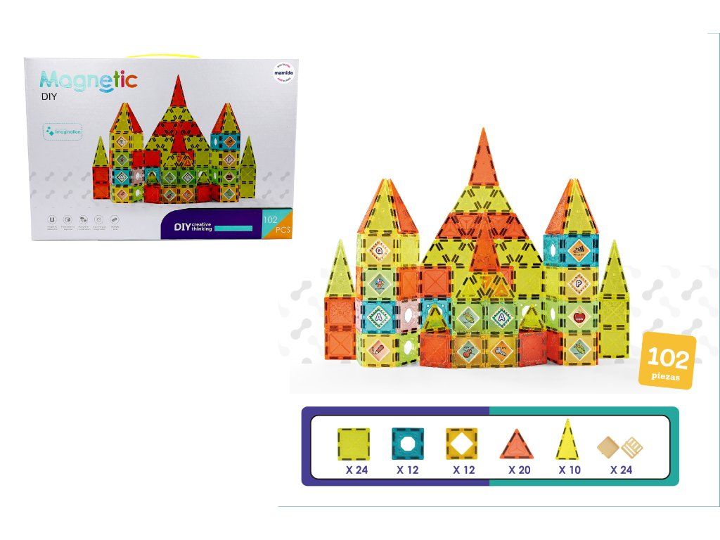 - Magnetická stavebnice s 102 barevnými průhlednými dílky