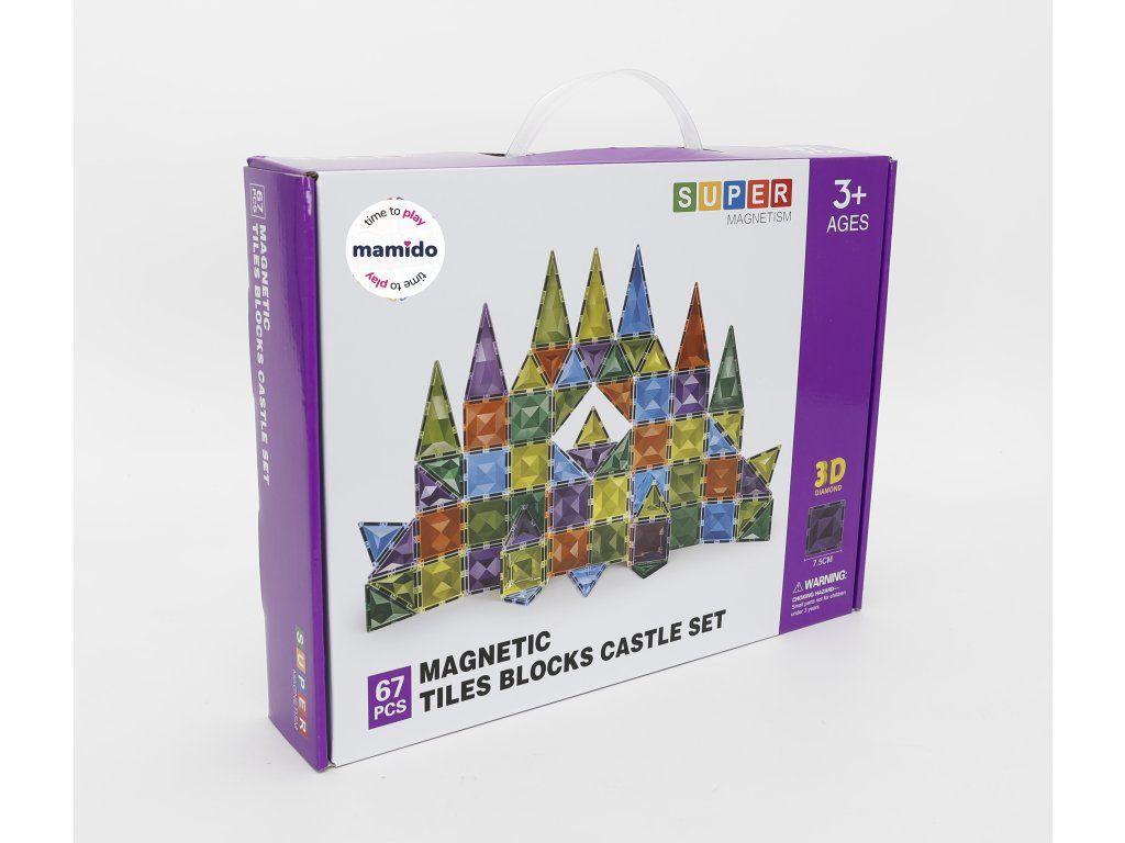 Sada nabízí 67 magnetických dílků ve velikosti 7,5 cm, které se díky silným magnetům snadno spojují a umožňují stavět jak jednoduché, tak rozsáhlejší 3D konstrukce. Různé tvary a barvy podporují rozvoj představivosti a jemné motoriky. Stavebnice je kompatibilní s většinou běžných magnetických panelů, takže ji lze snadno rozšiřovat.