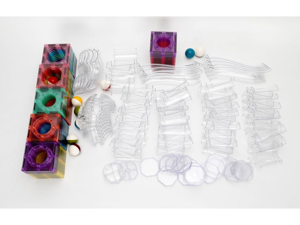 Díky kombinaci magnetických panelů, trubek, zatáček a spojek si děti mohou vytvořit složitou 3D kuličkovou dráhu, která je pokaždé jiná. Magnetické propojení umožňuje rychlé stavění, pevnost a bezproblémový průjezd kuliček. Sada podporuje logické myšlení, kreativitu a plánování.
