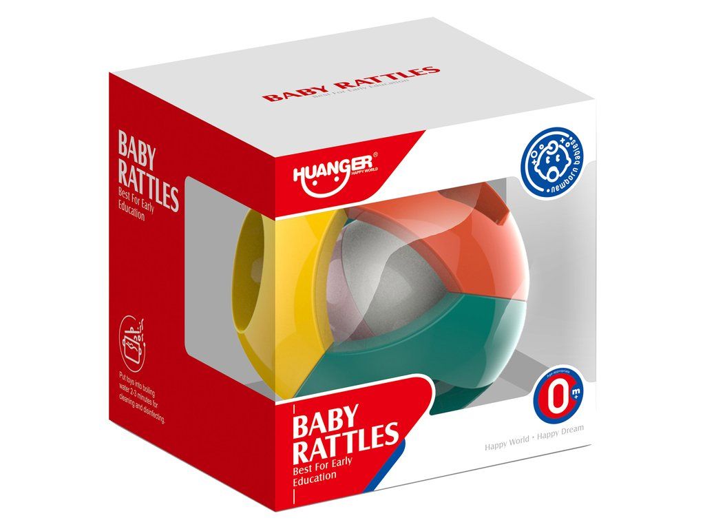 Chrastítko lze snadno uchopit a držet v dětských ručičkách. Uvnitř koule je chrastící malý míček. Při hře s ním batole zaměří svou pozornost pouze na něj. Míč má zaoblené hrany, takže jsou pro batole zcela bezpečné. Na každé ze stěn je otvor ve tvaru geometrického obrazce trojúhelník, šestiúhelník.