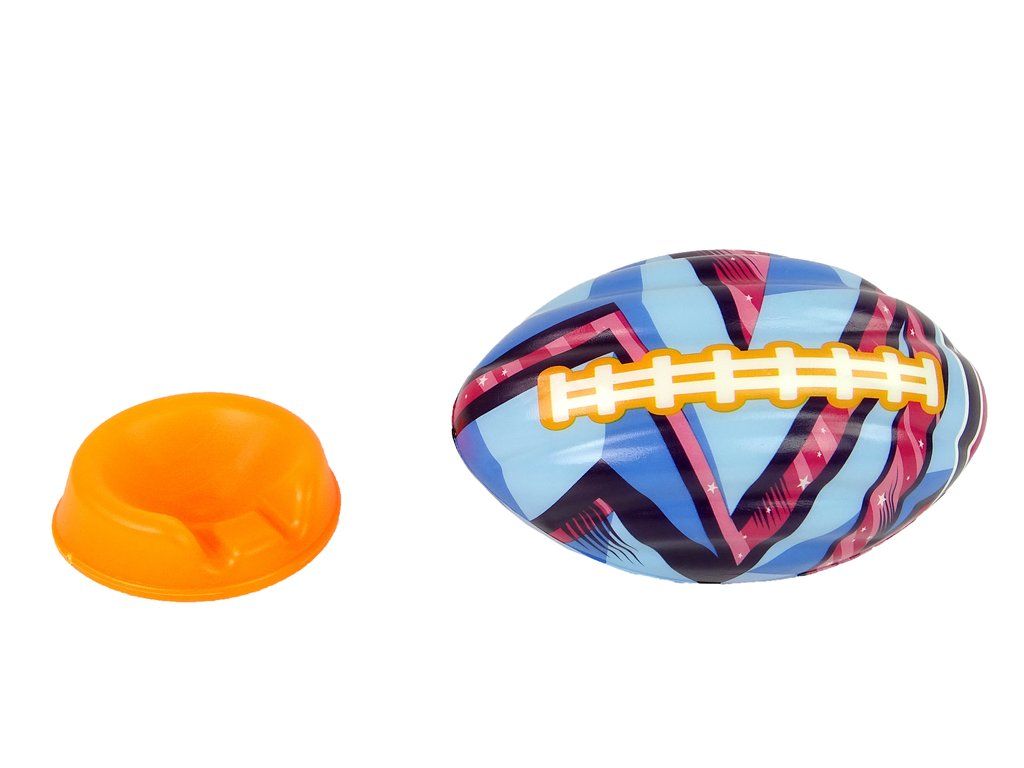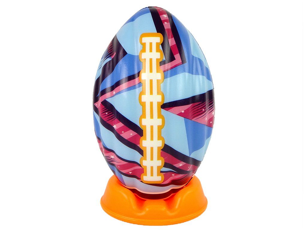 Rugbyový míč vyrobený z odolné, lehké a povětrnostní pěny. Míč je v pestrých rugbyových barvách.