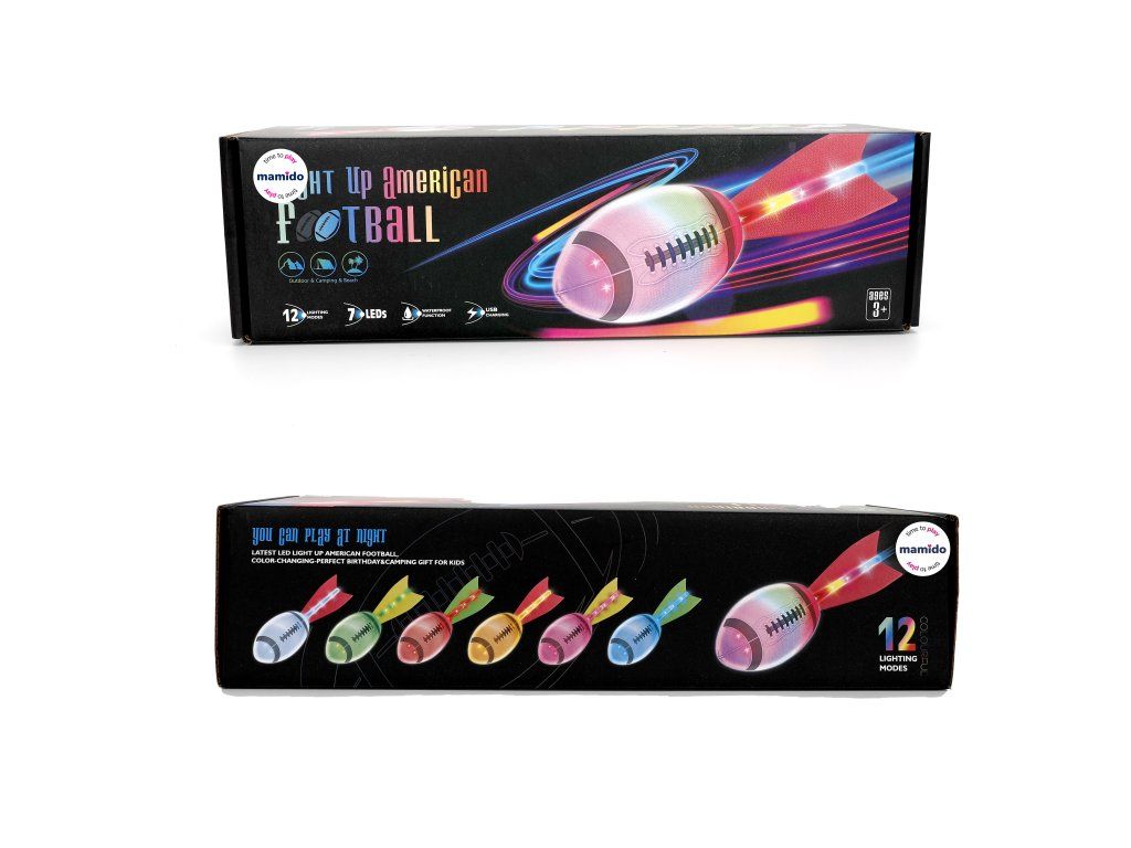 Barevný svítící míč na americký fotbal, rugby s ocasem, 12 světelných režimů MT1581
