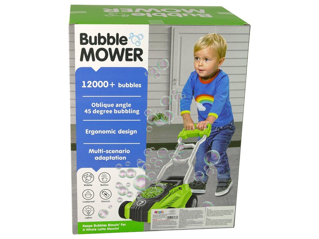 Vybaveno přihrádkou na baterie na zadní straně, kterou lze otevřít pomocí přiloženého šroubováku. Na vrchu sekačky je navíc odkládací přihrádka s nádobkou na láhev na bublinky. Lampy v sekačce, osvětlující bubliny, vytvářejí magickou atmosféru a dodávají jedinečné kouzlo.