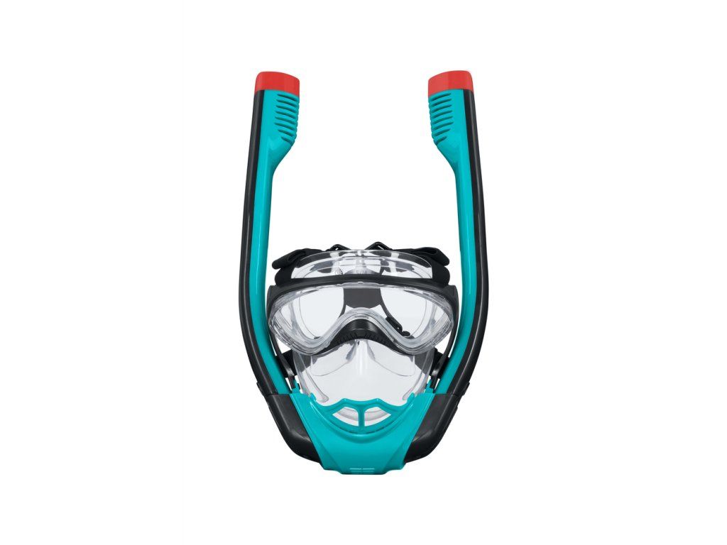 Tento inovativní design masky a šnorchlu nové generace umožňuje přirozené dýchání nosem a ústy ve vodě. Vdechujete čerstvý vzduch jedním šnorchlem a druhým vydechujete CO2 díky technologii jednosměrného proudění vzduchu. Měkká, silikonová konstrukce pokrývající celou tvář pohodlně a bezpečně přiléhá na hlavu, umožňuje přirozené dýchání nosem a ústy a zároveň vyrovnává tlak při sestupu a výstupu z vody. Pokročilá technologie suchého šnorchlu zabraňuje vniknutí vody do masky, když je ponořená. V horní části šnorchlu je malé plovoucí zařízení, díky kterému můžete potápět pod vodou bez obav, že by se voda dostala do dýchacího prostoru. Pokud se stane, že se voda dostane do šnorchlu, je tu vypouštěcí ventil, který usnadňuje čištění.