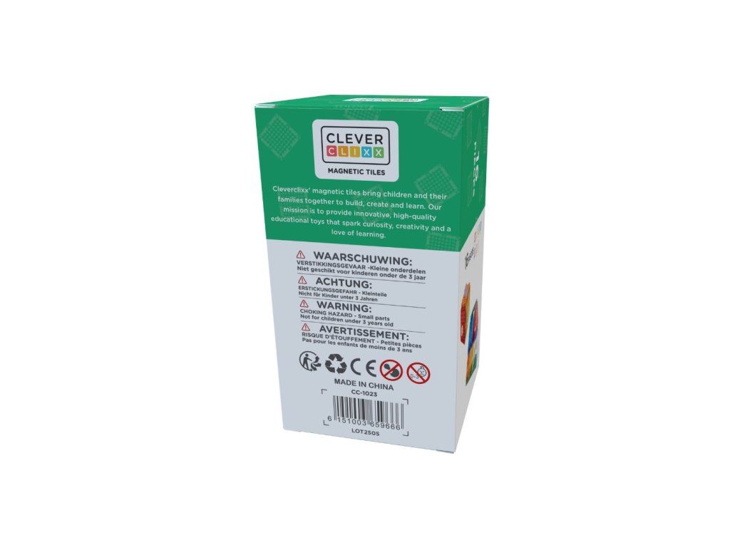 Cleverclixx je vyroben z odolného ABS plastu a disponuje extra silnými magnety, které udrží vše pevně pohromadě. Výrobek splňuje všechny bezpečnostní normy (CE) a je plně kompatibilní s dalšími oblíbenými magnetickými stavebnicemi, jako jsou například Connetix Tiles.