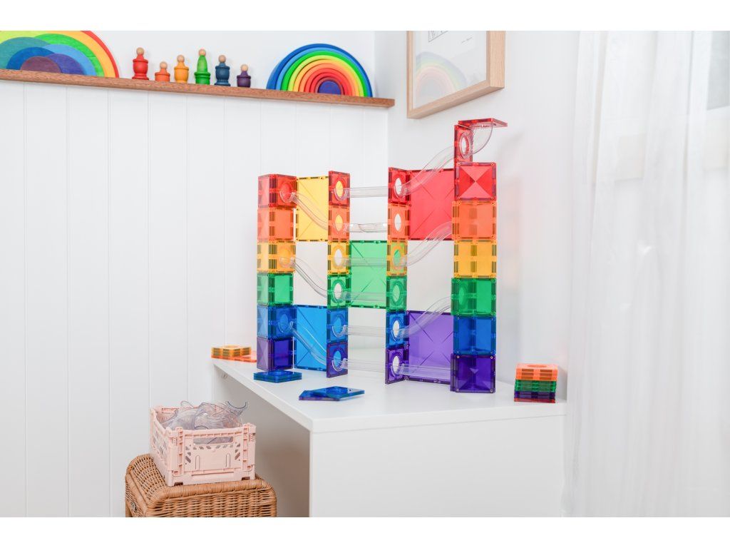 Magnetická kuličkodráha Connetix Tiles je perfektní startovací sada pro malé stavitele i pro ty, kteří chtějí rozšířit své kuličkové dráhy. Sestavujte, experimentujte a nechte děti rozvíjet svou fantazii!