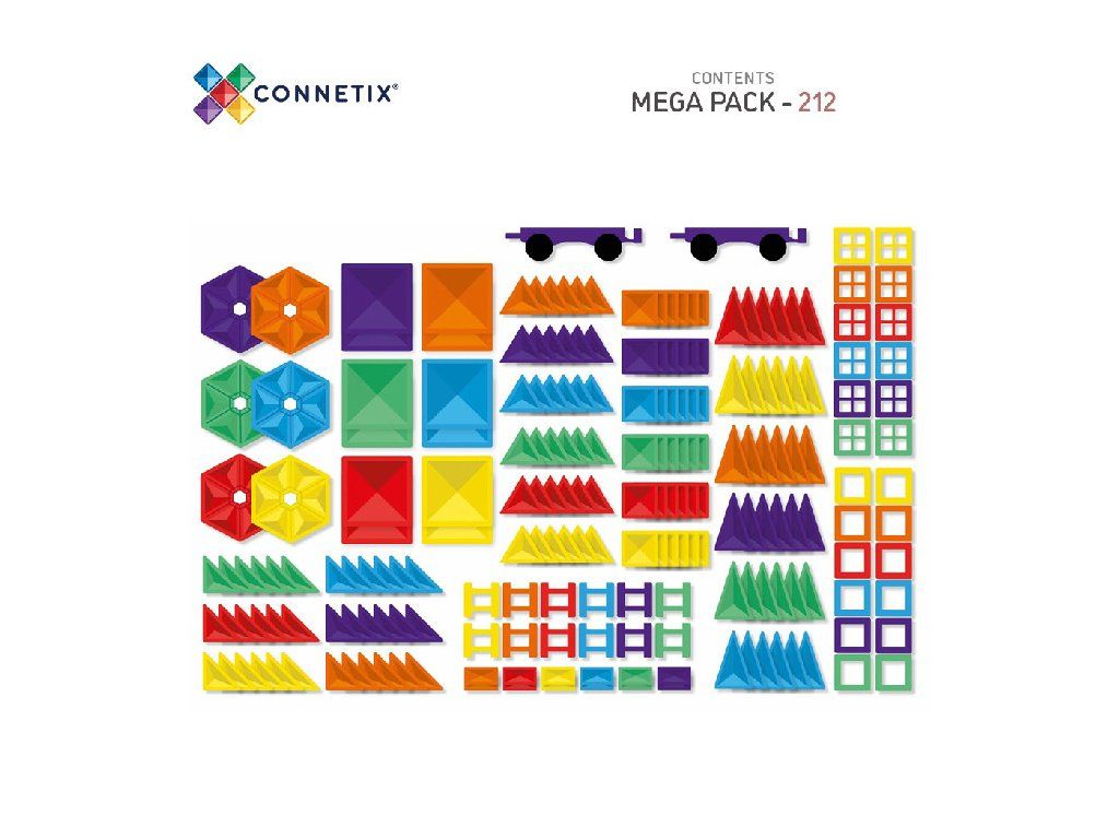 Objevte nekonečné možnosti tvoření s magnetickou stavebnicí Connetix Tiles v jedinečném balení Mega Pack, které obsahuje 212 barevných dílků!
