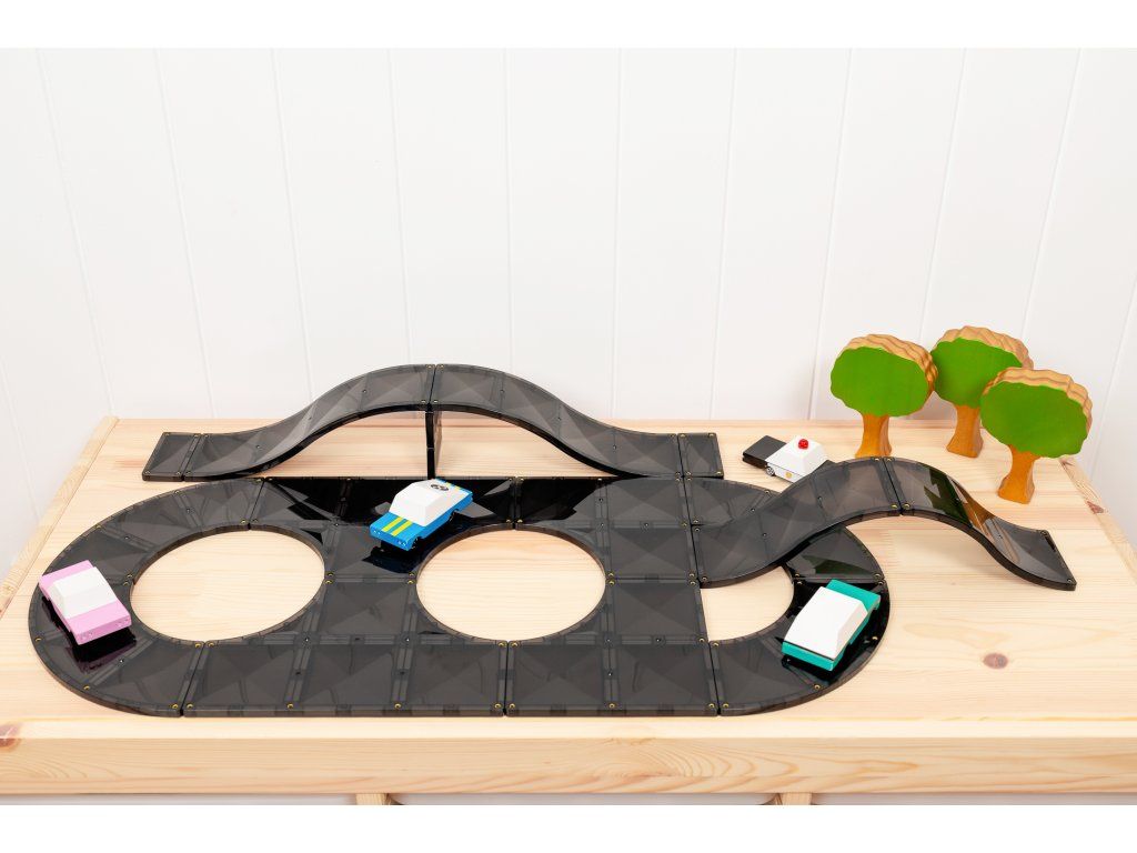 Připojte se k nekonečné zábavě s magnetickou stavebnicí Connetix Tiles - rampy a křižovatky! Tato speciální sada pro stavbu silnic a závodních tratí rozšiřuje možnosti a nabízí nové tvary a díly, které rozproudí vaši kreativitu. K dispozici máte exkluzivní díly jako rampy, zatáčky a křižovatky, vše v elegantní černé barvě, která imituje skutečné silnice. Tato sada se skvěle hodí pro všechny, kdo milují stavění silnic, měst, závodních okruhů nebo dokonce skateparků!