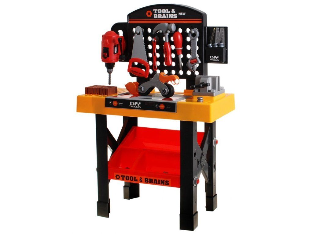 Vaše dítě při hraní s touto úžasnou sadou nářadí se bude cítit jako skutečný mechanik, který vede svou dílnu. Jednotlivé prvky dílny lze umístit na praktický stojan. Bohatství doplňků a solidní zpracování jsou dalšími výhodami této vynikající sady nářadí.