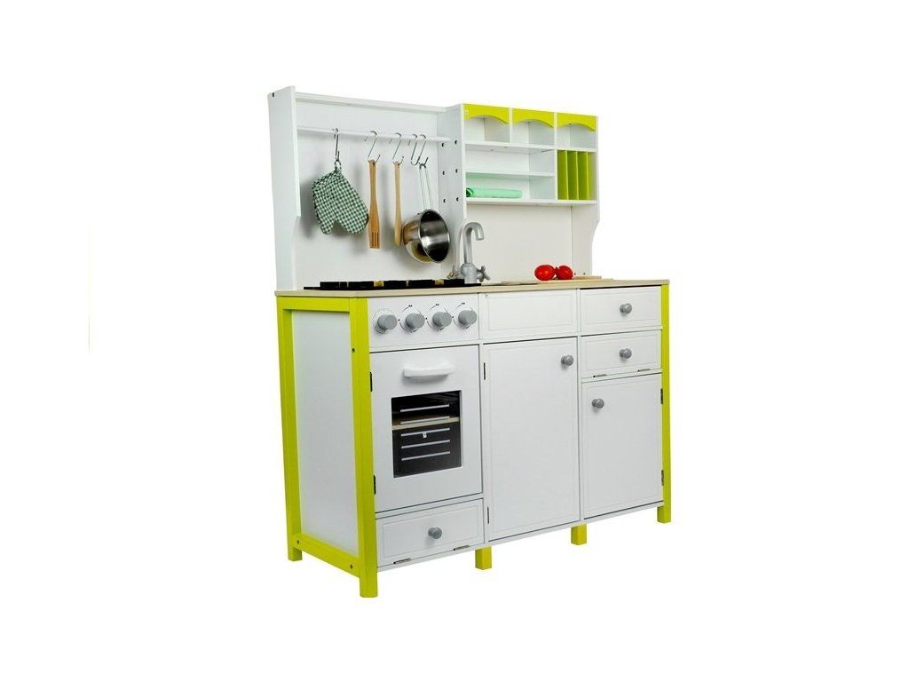 Krásná dřevěná kuchyň, která se vyznačuje realistickým designem, funkčností a rozměry vhodnými pro růst dětí. Díky ní dítě poznává a učí se základní domácí práce. Dětská kuchyňka je vybavena sporákem, policemi, zásuvkou, troubou a dřezem. Kuchyň je vyrobena z velice kvalitního materiálu.