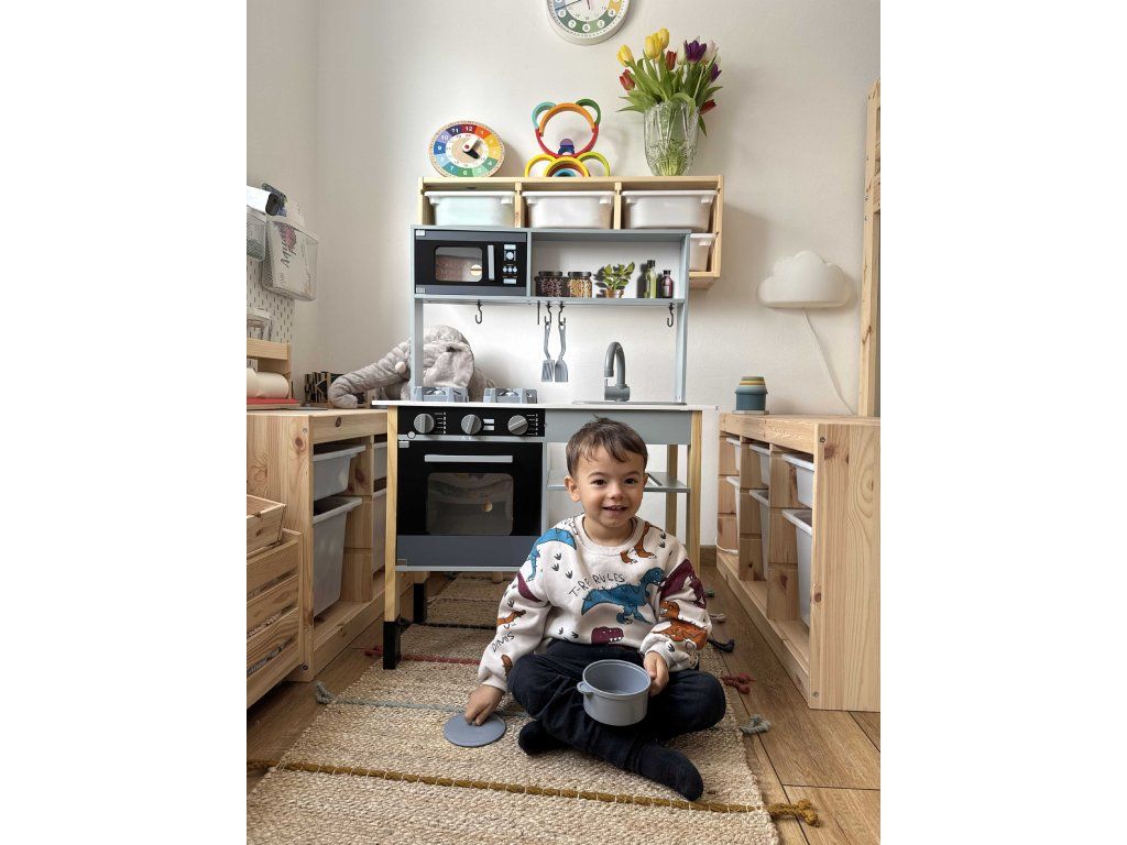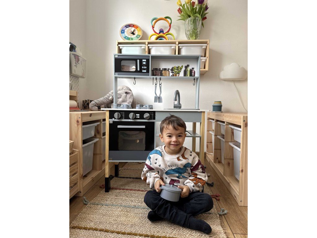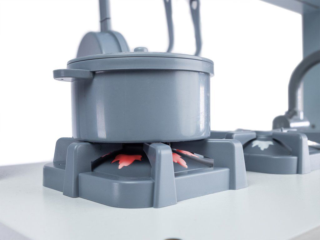Tato stylová šedá dětská kuchyňka přináší dětem radost z vaření a podporuje jejich kreativitu a fantazii. Je navržena tak, aby nabízela realistický zážitek z kuchyňského prostředí, a díky elektrické plotýnce se světelnými a zvukovými efekty si děti mohou hrát na skutečné vaření!