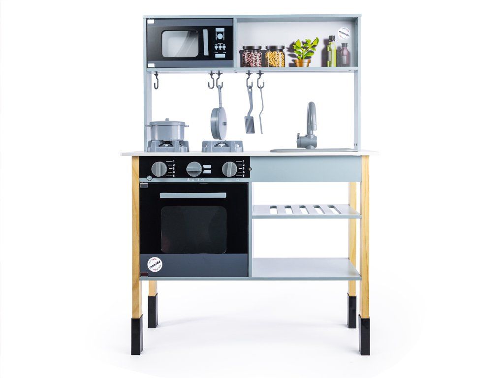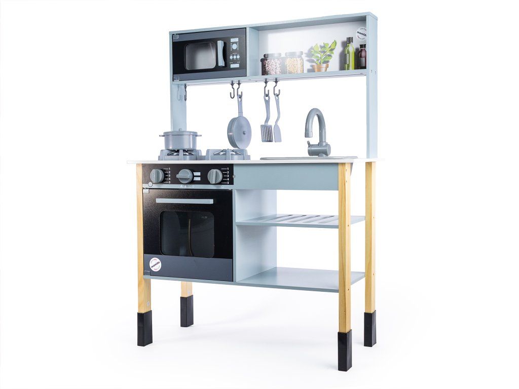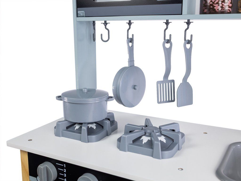 Dětská Dřevěná Kuchyňka - Sporák Mikrovlnná trouba Hrnce šedá