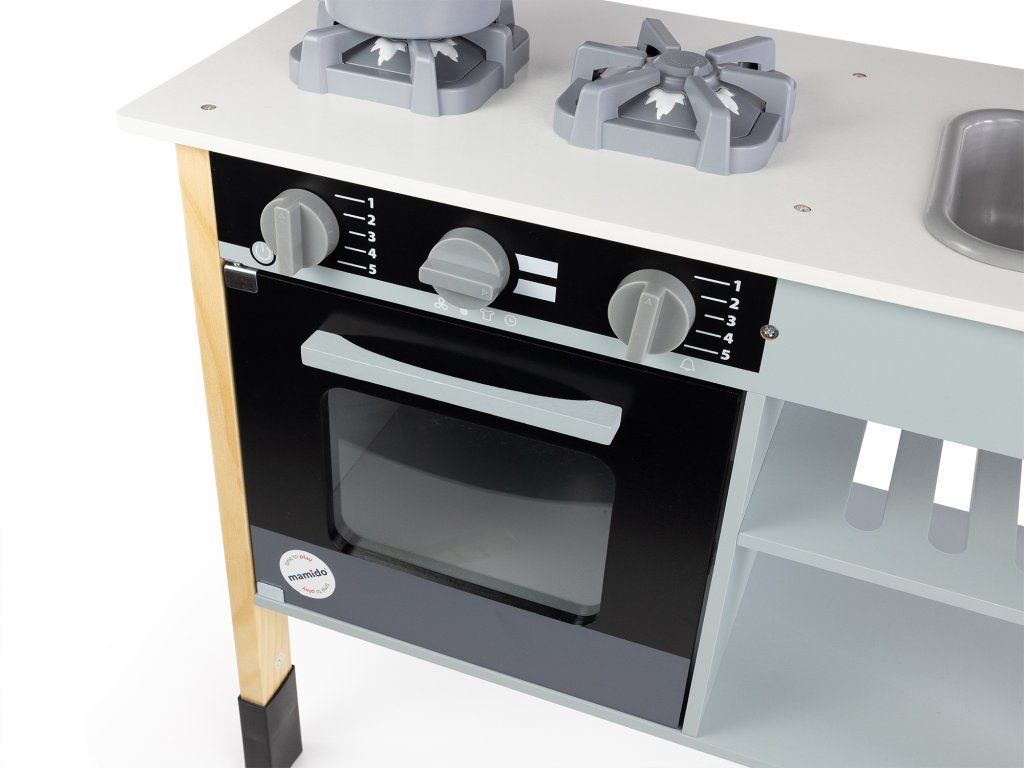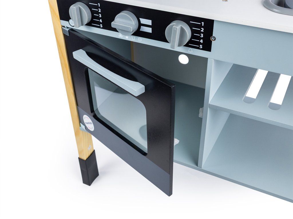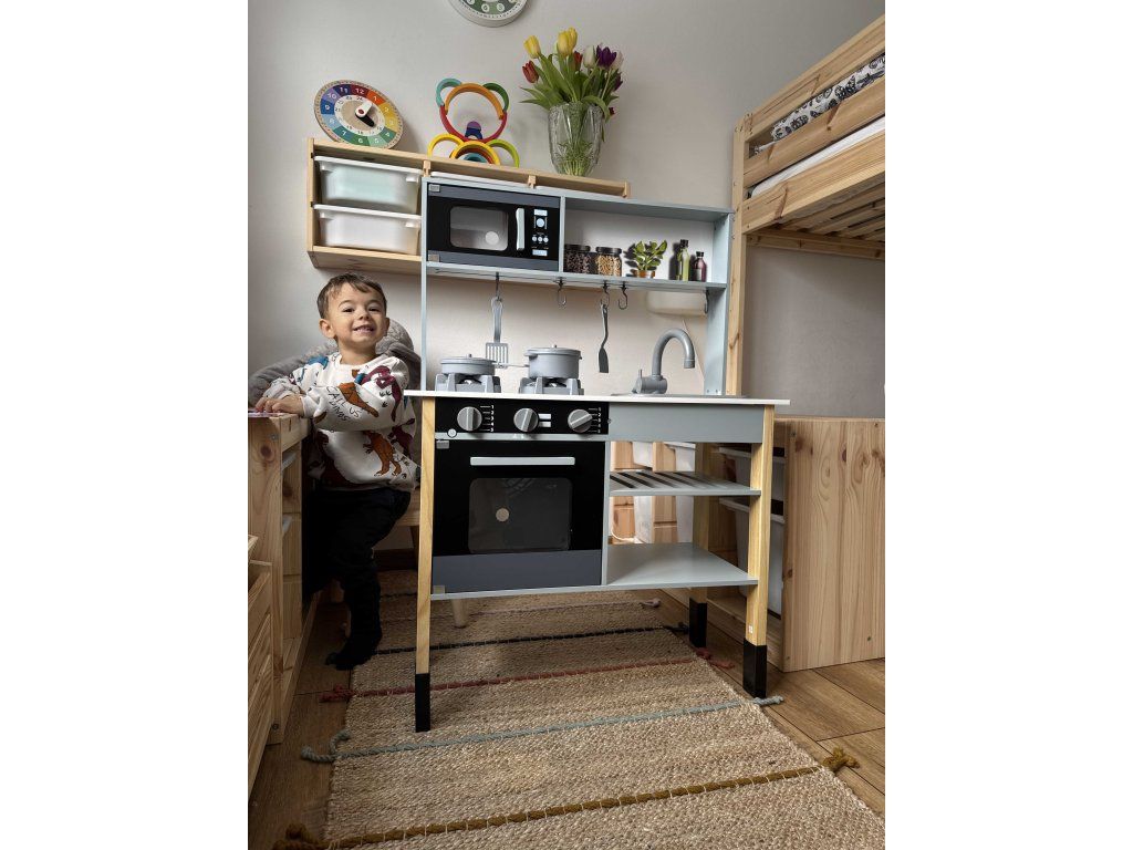 - Bezpečné materiály: Kuchyňka je vyrobena z kvalitního dřeva, které zaručuje dlouhou životnost a bezpečnost.