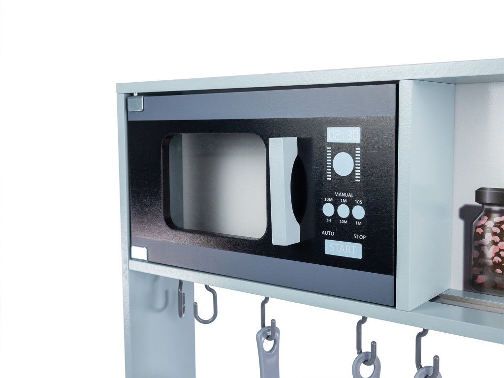 - Realistický design: Obsahuje mikrovlnnou troubu, dřez s kohoutkem, úložné prostory, sporák a troubu, které dětem umožní napodobovat skutečné kuchařské aktivity.