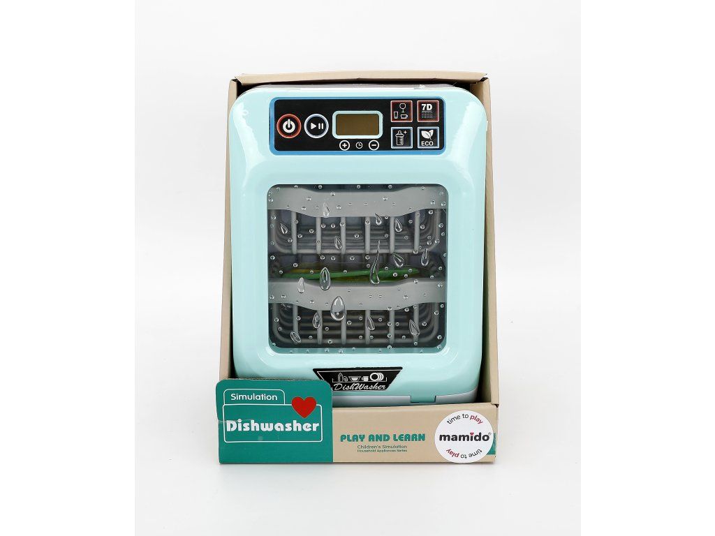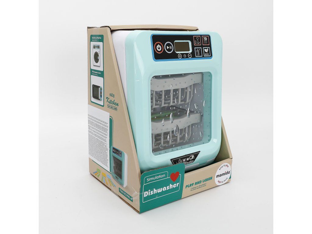 Stylová dětská myčka nádobí v realistickém designu krásně doplní každou dětskou kuchyňku. Uvnitř najdete dva patra košů a průhledná dvířka s efektem kapek vody – vše působí jako skutečná myčka. Po spuštění se rozsvítí světelný efekt, který simuluje mycí proces a děti tak mohou pozorovat „mytí“ nádobí.