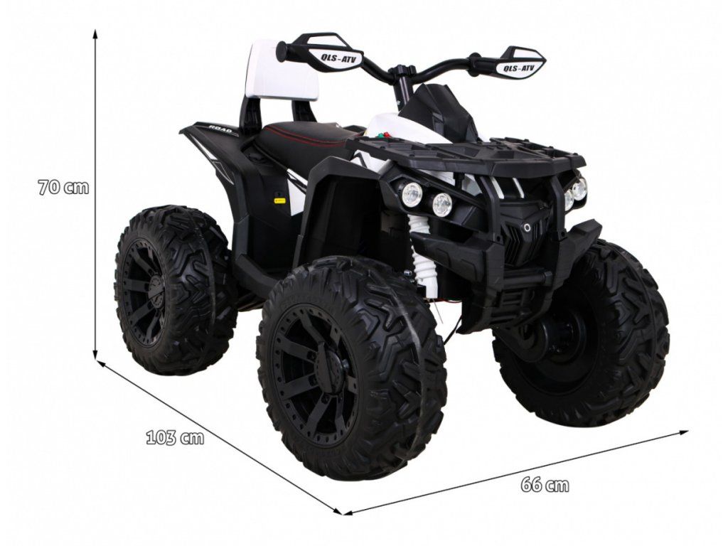 Čtyřkolka vás zaujme svým vybavením jako jsou přední LED světla a hudební panel, který má MP3, FM rádio, Bluetooth, vstup pro USB, AUX, SD kartu a tlačítka s předehranými melodiemi a klaksonem. Při startování uslyšíte zvuky motoru a vozidlo se plynule rozjede i zastaví.