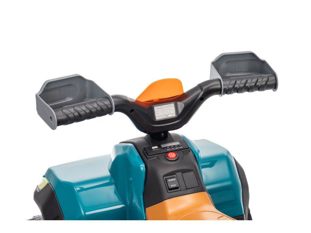 Mezi vybavení patří hudební panel se vstupy USB a MP3. Čtyřkolka má přední a zadní LED světla, umožňuje jízdu ve všech směrech a její nosnost je do 30 kg.