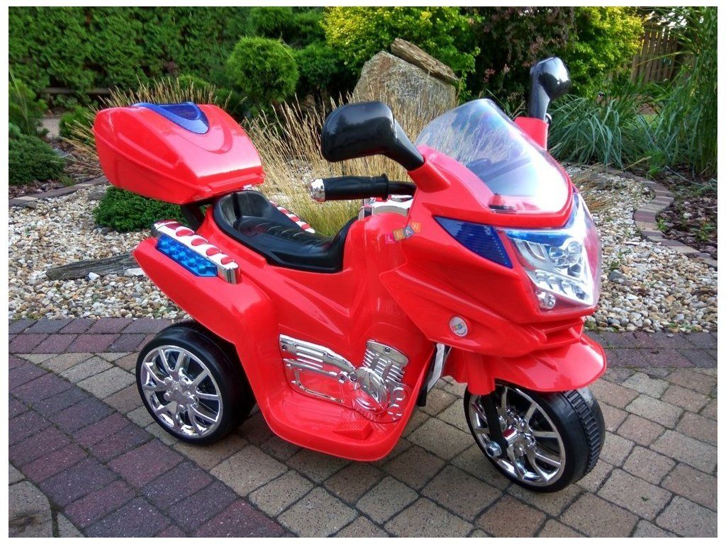 Červená elektrická motorka určitě přinese úsměv na tváři každého dítěte, zpestří procházky a čas strávený venku. Hra s touto motorkou bude mít pozitivní vliv na vývoj dítěte, na učení nezávislého odhadu rychlosti a vzdálenosti a na zlepšení motorických dovedností, což je velmi důležité na začátku života. Konstrukce s třemi koly je také velmi důležitým řešením, které usnadní dětem potíže s udržováním rovnováhy při řízení.