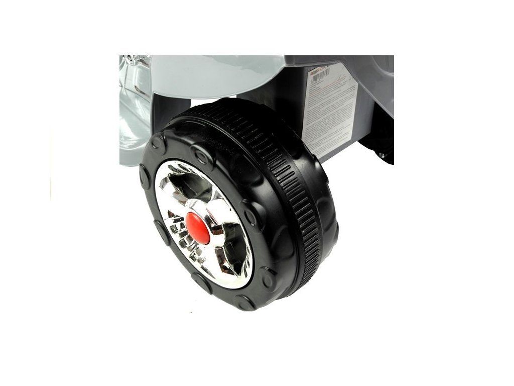 Červená elektrická motorka je vybavená baterií 6V4,5Ah a silným motorem 18 W. Duo těchto komponentů vám umožní dosáhnout rychlosti kolem 4 km / h, což přinese každému dítěti skvělou zábavu. A co víc: tento model má dvě rychlostní stupně - přední a zadní, což výrazně usnadňuje zábavu. Dalšími prvky, které jsou hlavními výhodami této motorky jsou: transparentní kapota, boční zrcátka a LED osvětlení, které zvyšují viditelnost dítěte na silnici. Na zadní straně je otevírací kufr, ve kterém malý řidič může držet své poklady. Nezanedbatelným prvkem je houkačka a hudební tlačítka v oblasti volantu.