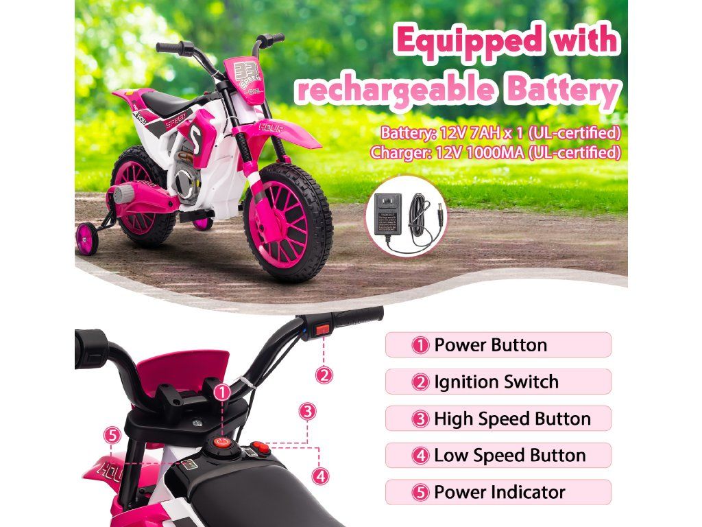 Dětská elektrická motorka XMX616 růžová | EVA kola | 12V 7Ah