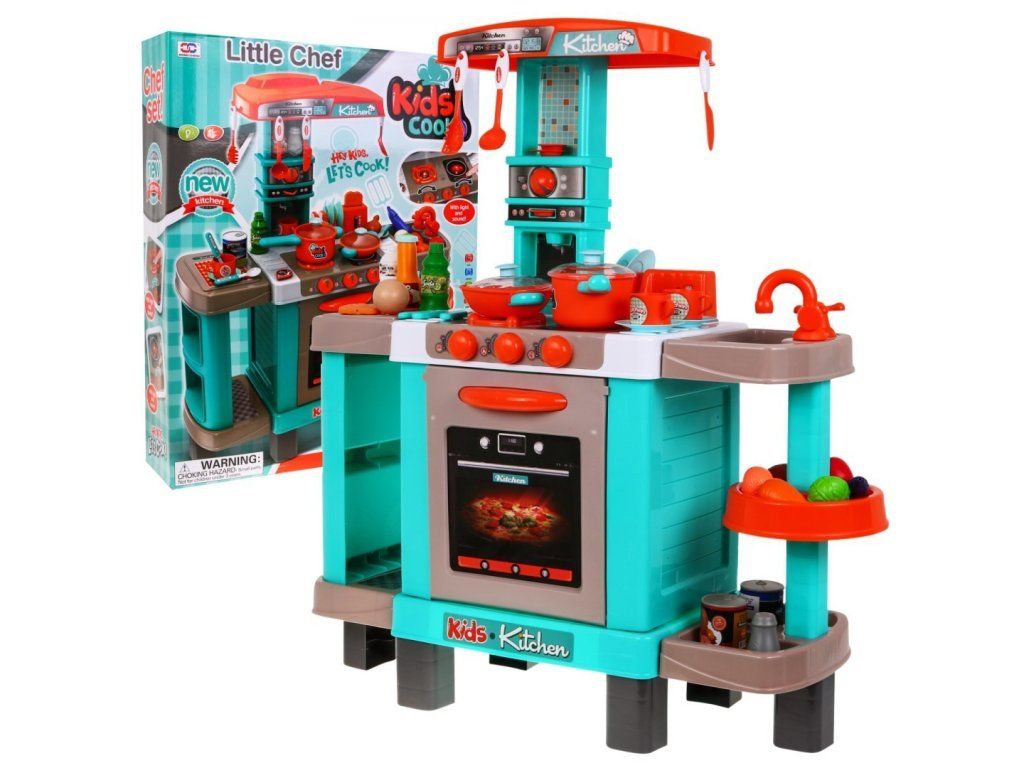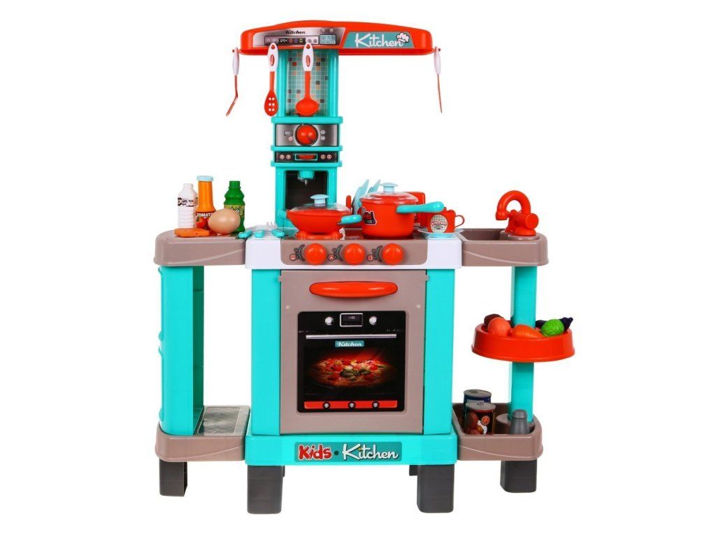 Velká interaktivní kuchyňka pro všechny malé kuchaře a kuchařky. Dětská kuchyňka má zvukové (zvuky vaření a smažení) a svítící funkce (blikající světlo na 1 hořáku a světlo na indukční varné desce). Kromě toho má „indukční varná deska“ funkci ovládání hlasitosti. Kuchyň je vybavena toustovačem a kávovarem.
