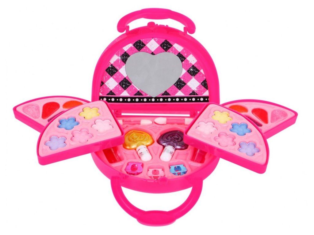Všechny malé princezny rády sledují, jak se jejích maminka líčí a sní o tom, že si taky jednou budou moci malovat rty a oči. Líčidla jsou v praktické krabičce ve tvaru kabelky, takže je bude mít malá slečna vždy po ruce. Dětská kosmetická sada obsahuje různé barvy očních stínů, lesky na rty, rtěnky, laky na nehty, stejně jako štětce a sponky do vlasů.Součásti kosmetické sady je zrcadlo.