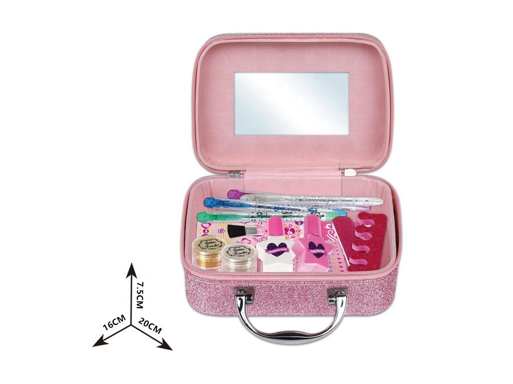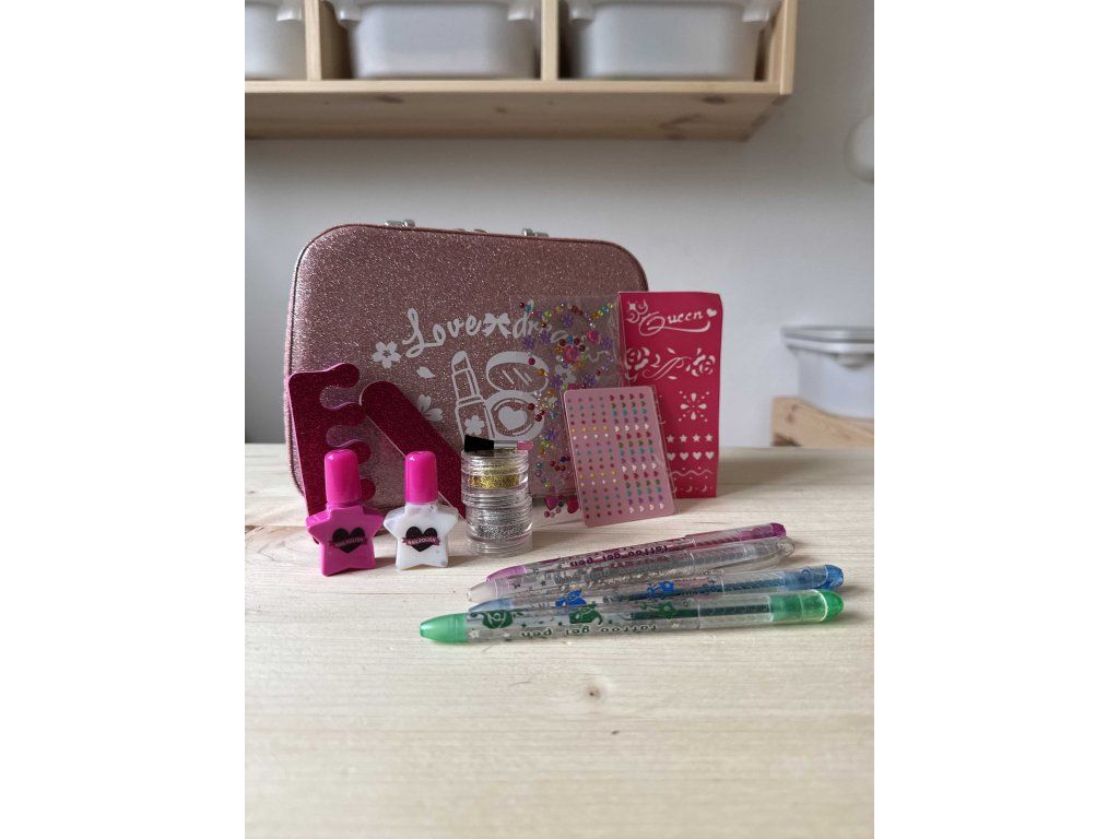 Dětská kosmetická sada v elegantním růžovém kufříku je ideálním dárkem pro malé princezny, které se chtějí cítit jako dospělé. Tato sada obsahuje vše potřebné pro tvorbu krásného make-upu a nehtového designu. V kufříku najdete různé druhy laků na nehty a doplňky pro nehty. Vše je bezpečné pro děti a snadno se čistí.