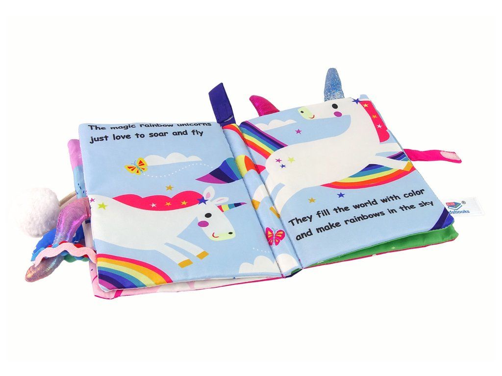 Tato okouzlující látková knížka je navržená tak, aby představila nejmladším čtenářům fascinující svět jednorožců. Podporuje jejich smyslový rozvoj, motoriku a slovní zásobu.