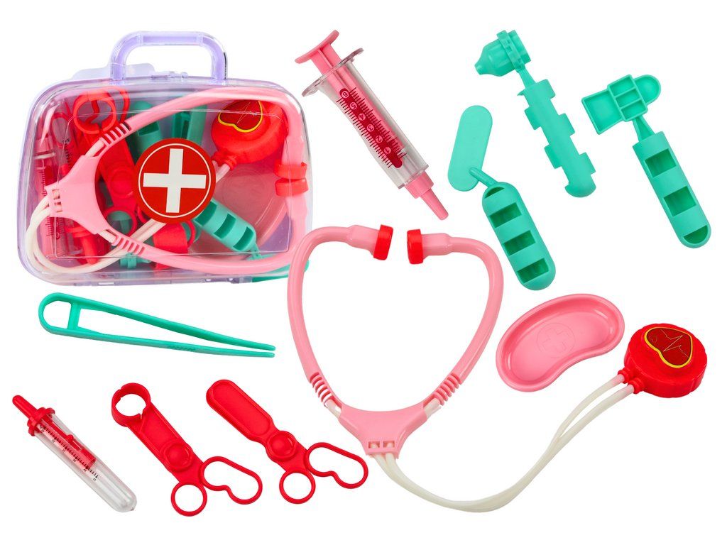 Sada je zabalena v praktickém plastovém kufříku, což usnadňuje skladování a transport, zároveň přidává element autentičnosti a povzbuzuje děti k hraní si na lékaře kdekoliv.