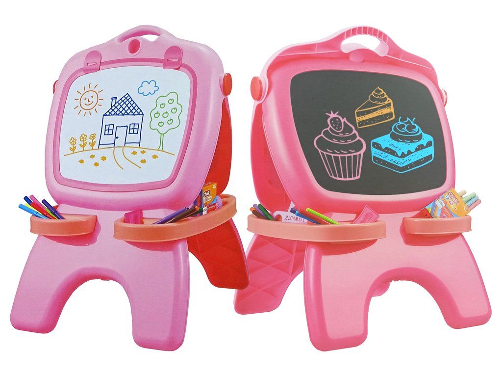 Oboustranná magnetická tabule udělá radost ne jednomu umělci, ale může být i učební pomůckou. Kreslení křídou a fixy je něco pro dítě, které miluje kreslení. Kreslení na tabuli rozvine u vašeho dítěte představivost, přesnost, koordinaci oko a ruka.
