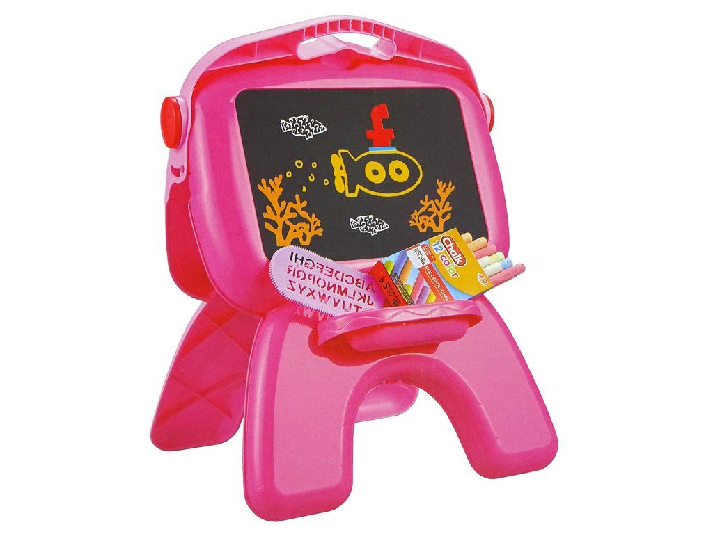 Oboustranná tabule s osvícením se dá složit na dvě strany. Má dvě kreslicí plochy. Bílá, pro použití s mazatelnými fixy a černá, pro kresbu křídou. Může být umístěna kdekoli v místnosti. Kromě toho má místo, do kterého můžete vložit fixy a další pomůcky pro kreslení. Projektor v horní části zobrazuje různé obrázky se zvířaty a postavami, které lze překreslit na povrch tabule. Šablony v sadě naučí vaše dítě správné názvy geometrických obrazců a psaní písmen.