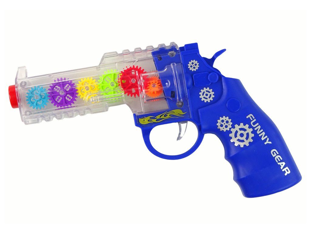 Když stisknete tlačítko, hračka se rozsvítí barevnými světly a vydává různé zvuky, které dodávají autentičnost. Barevné pilové listy uprostřed pistole se navíc otáčejí, což dává neobvyklý vizuální efekt.