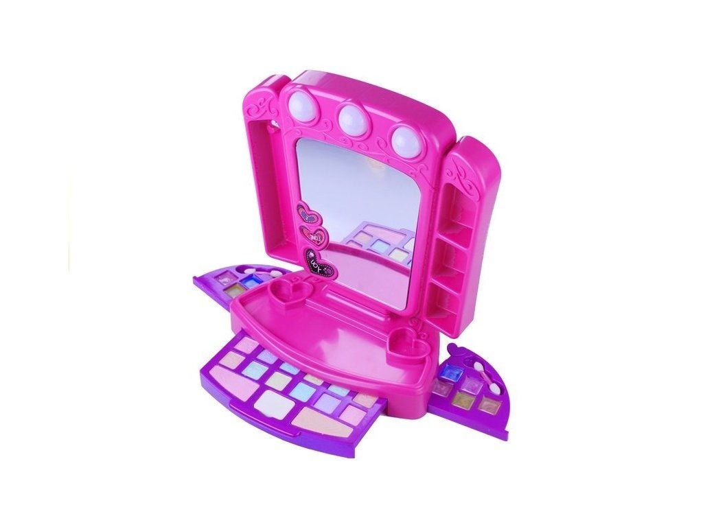 Dívčí toaletní stoleček s líčidly se bude jistě vyjímat v každém dětském pokoji. Nad zrcátkem toaletky jsou 3 světýlka, po stranách jsou malé přihrádky, kde uschováte drobnosti.