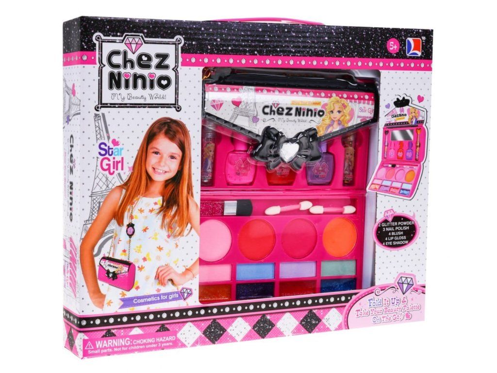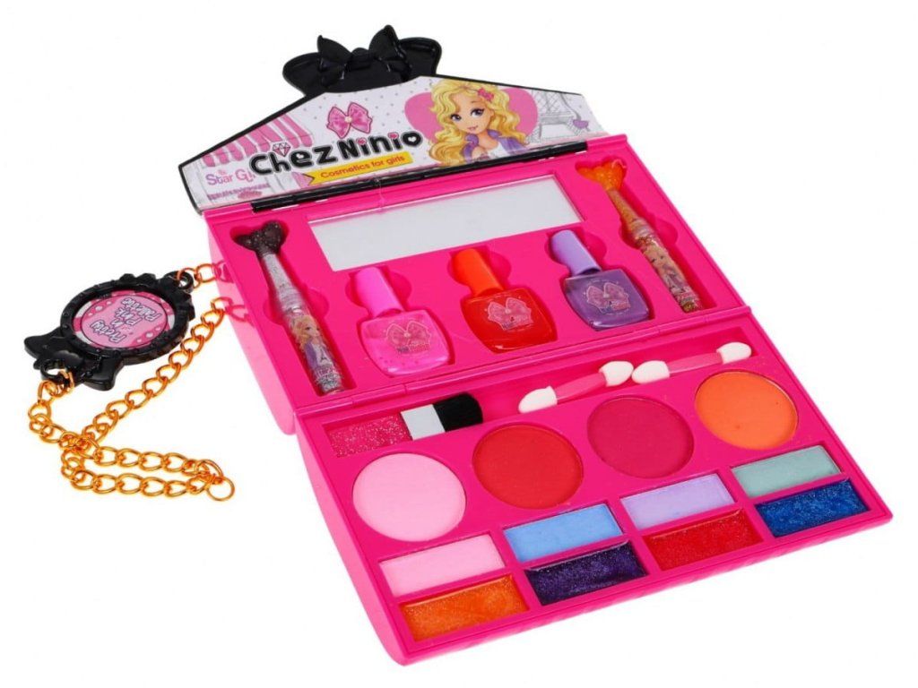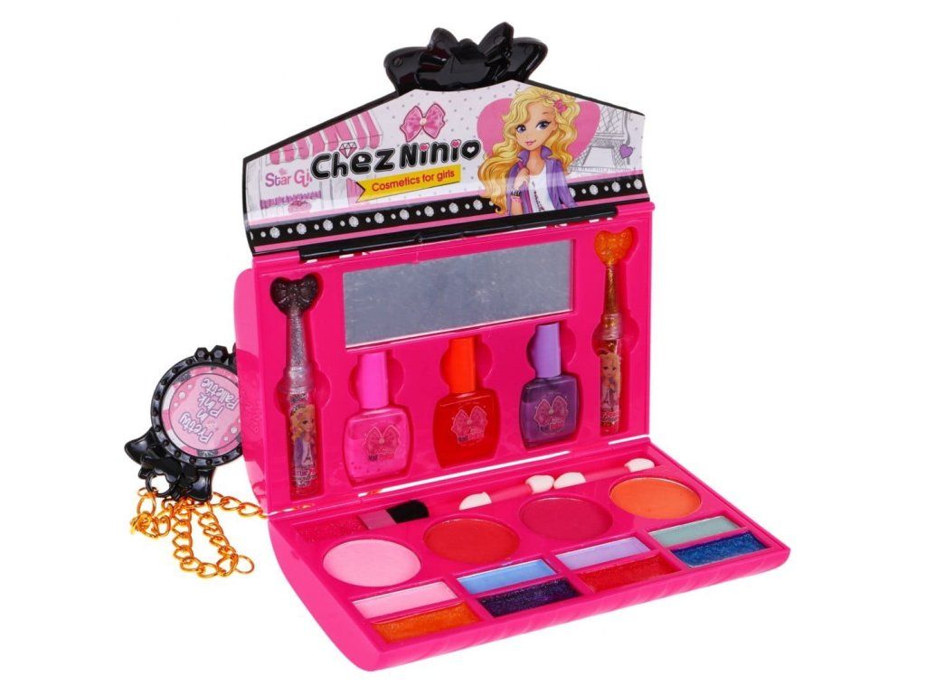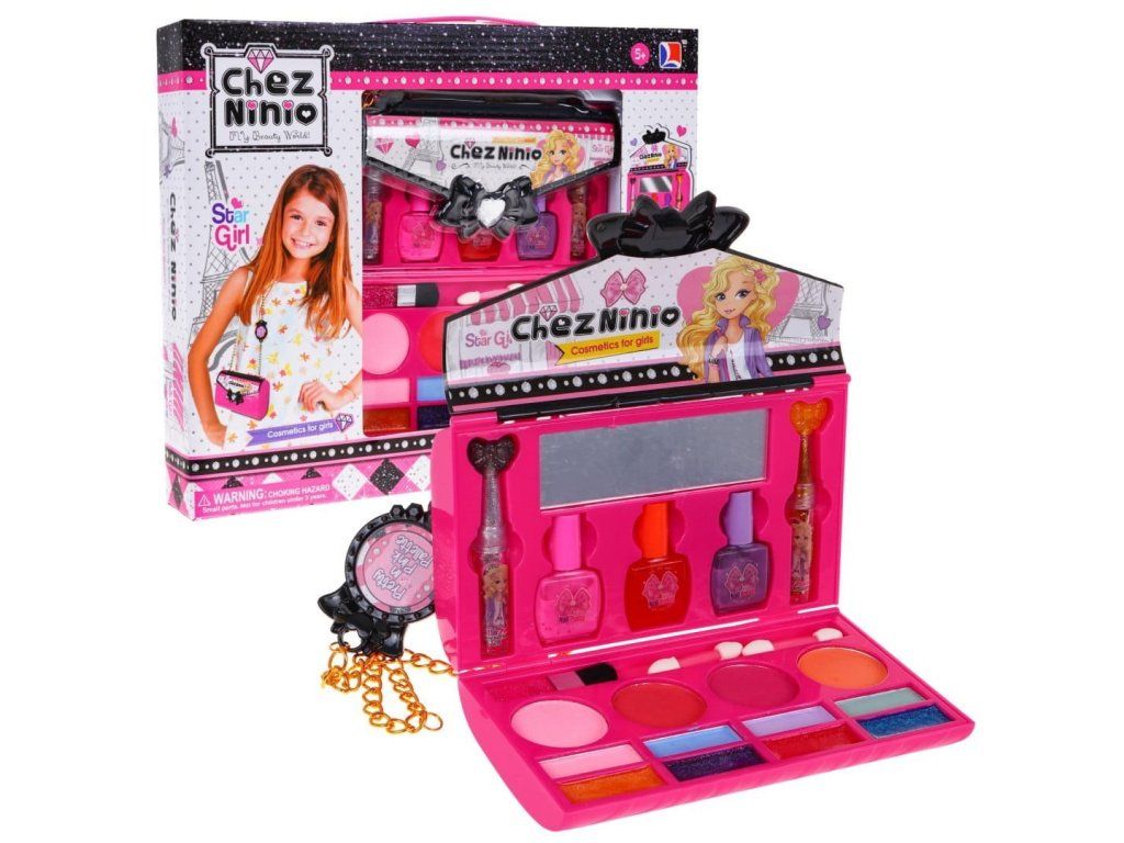 Všechny malé princezny rády sledují, jak se jejích maminka líčí a sní o tom, že si taky jednou budou moci malovat rty a oči. Líčidla jsou v praktické krabičce ve tvaru kabelky, takže je bude mít malá slečna vždy po ruce. Dětská kosmetická sada v kabelce obsahuje různé barvy očních stínů, lesky na rty, rtěnky, laky na nehty, stejně jako štětce a sponky do vlasů. Součásti kosmetické sady je zrcadlo.
