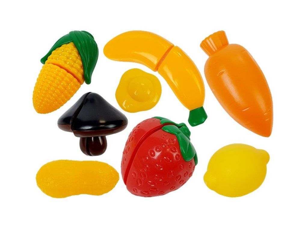 - Sada obsahuje potraviny na suchý zip - banán, kukuřice, jahoda a houba.