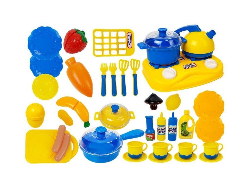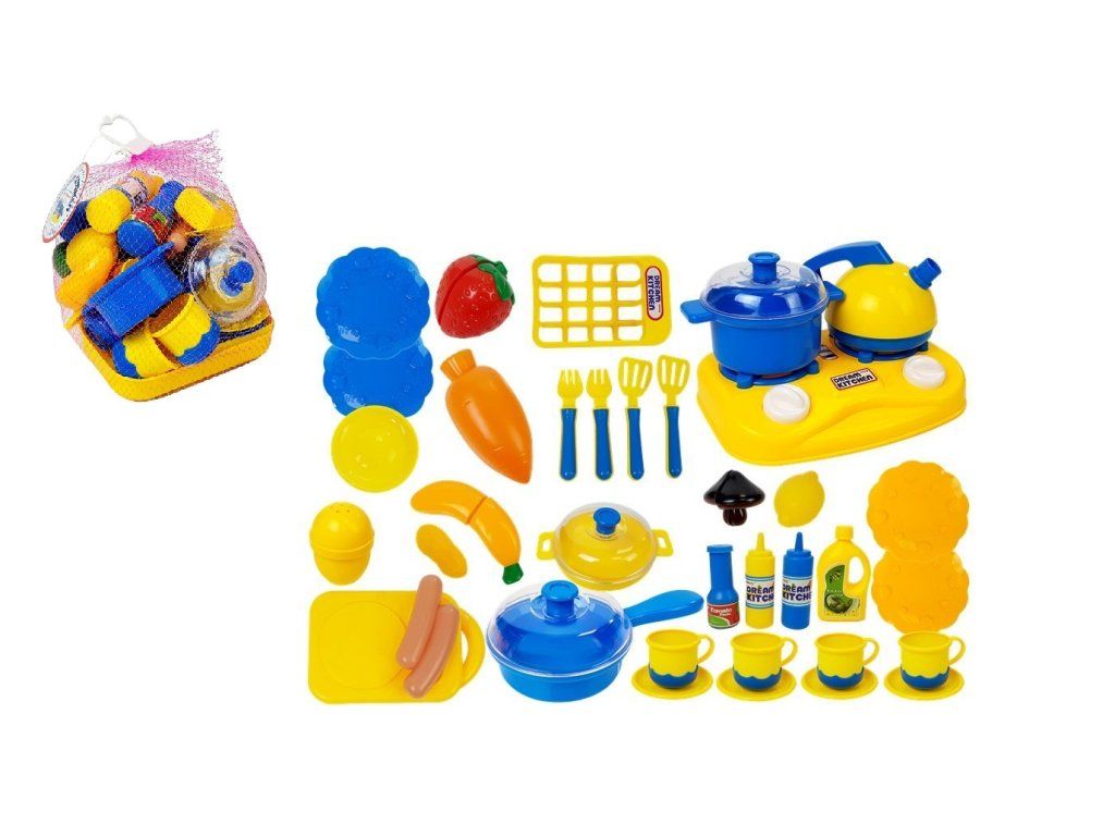 Dětská sada nádobí s potravinami a vařící deskou