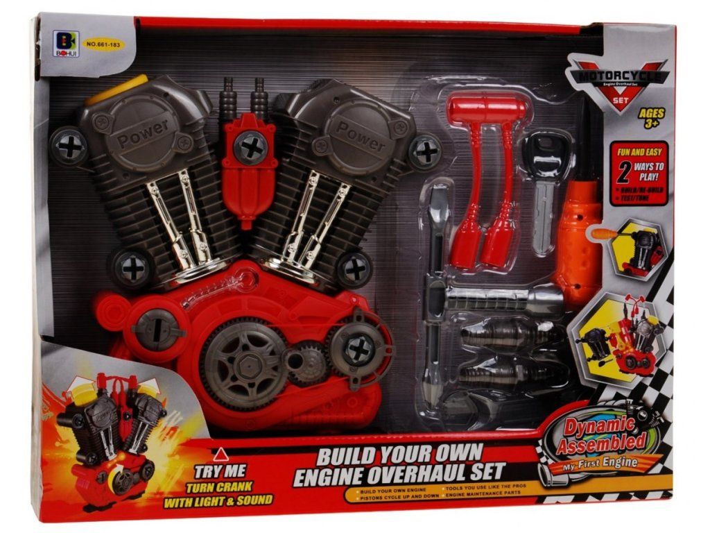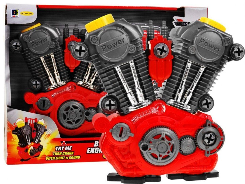 Šroubovací motor umožní dítěti snadněji zjistit, jak funguje spalovací motor, což mu pomůže pochopit princip, podle kterého se vozidla pohybují po silnicích. Hračka se vyznačuje velmi reálným designem a zpracováním s důrazem na nejmenší detaily, s použitím certifikovaných a pevných materiálů. Doprovázeno senzačními svítící a zvukovými efekty, které napodobují činnost motoru.