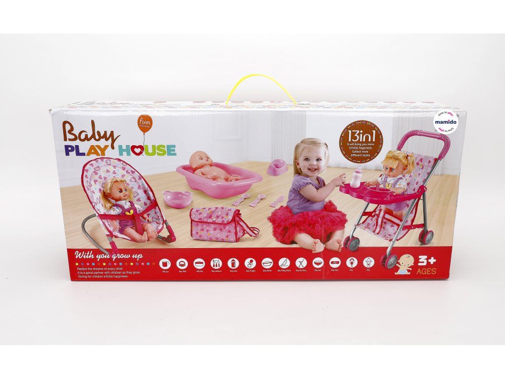 Tato sada přináší kompletní výbavu pro hraní na péči o miminko. Součástí balení jsou různé doplňky, díky kterým dítě může krmit, koupat, vozit v kočárku nebo ukládat panenku do sedačky. Set podporuje hru na role, rozvoj fantazie a napodobování opravdové péče o miminko.