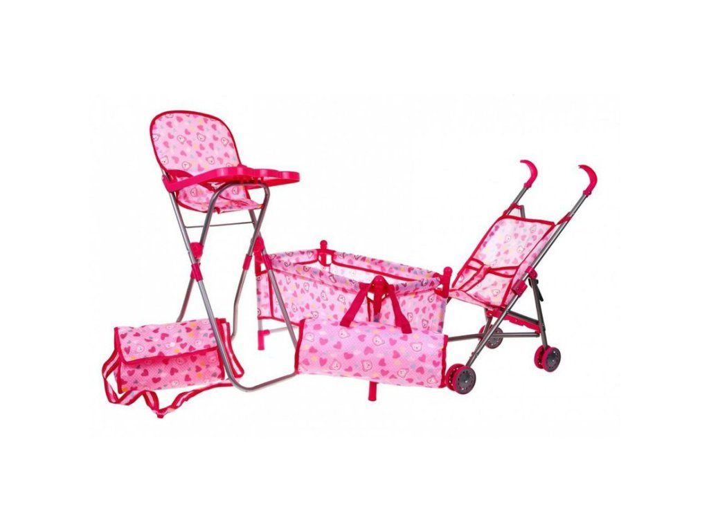 Sada 5v1 Kočárek pro panenky Postýlka Židlička Kabelka