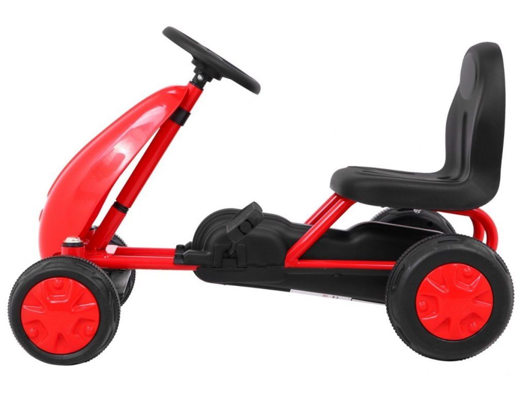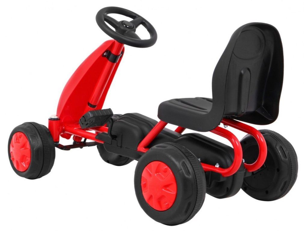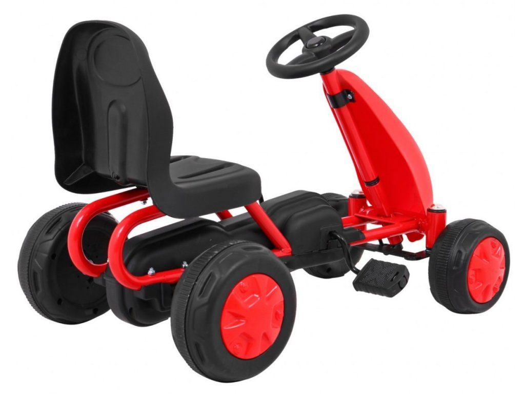 Dětské šlapadlo v podobě motokáry je tím pravým společníkem pro rozvoj pohybu Vašeho dítěte. Díky kolům z tvrdého plastu dítě může jezdit i po terénech, které nejsou jen hladké a rovné. Šlapadlo má ergonomicky tvarované a pohodlné sedátko, takže dítě dokáže jezdit celý den v naprostém pohodlí. Šlapadlo dítě ovládá s pomocí sportovního volantu. Dětská motokára funguje na šlapací pohon. Je bezmotorová, tedy zcela nehlučná a nezatěžuje životní prostředí. Je to nová forma sportovní aktivity.