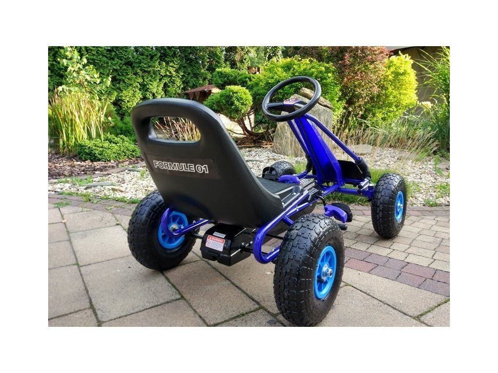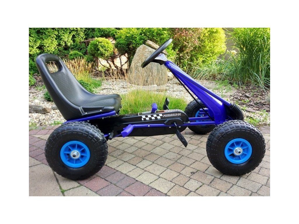 Dětská šlapací motokára s nafukovacími koly A-15 modrá
