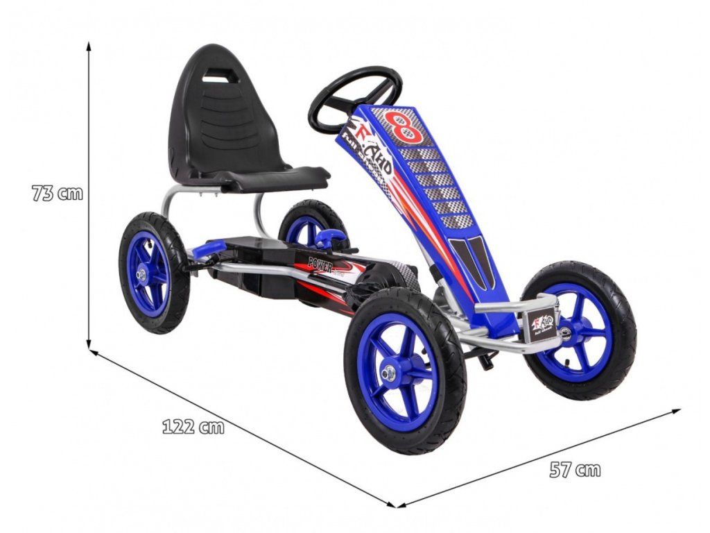 Dětská šlapací motokára s nafukovacími koly byla vyrobena z lehké kovové konstrukce s doplňky z umělé hmoty. Je vybavena nafukovacími gumovými koly a pohodlným, tvarovaným sedákem, který zajistí pohodlí při jízdě.