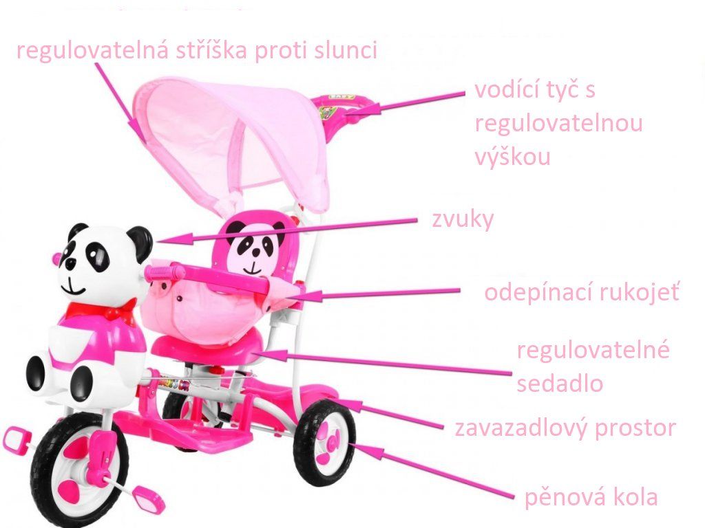 Dětská tříkolka Panda se zvukovými efekty růžová