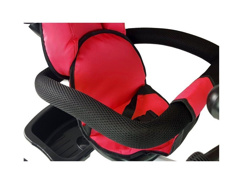 Dětská tříkolka má ve své výbavě prostorný koš na hračky, nákup nebo potřeby pro dítě. Dále je ve výbavě tříkolky blatník předního kola, rukojeť a bezpečnostní pás. Ten zajišťuje dítě v pohodlné poloze a eliminuje nebezpečí pádu dítěte ze sedadla.