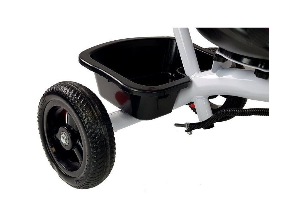 Dětská tříkolka má ve své výbavě prostorný koš na hračky, nákup nebo potřeby pro dítě. Dále je ve výbavě tříkolky blatník předního kola, rukojeť a bezpečnostní pás. Ten zajišťuje dítě v pohodlné poloze a eliminuje nebezpečí pádu dítěte ze sedadla.