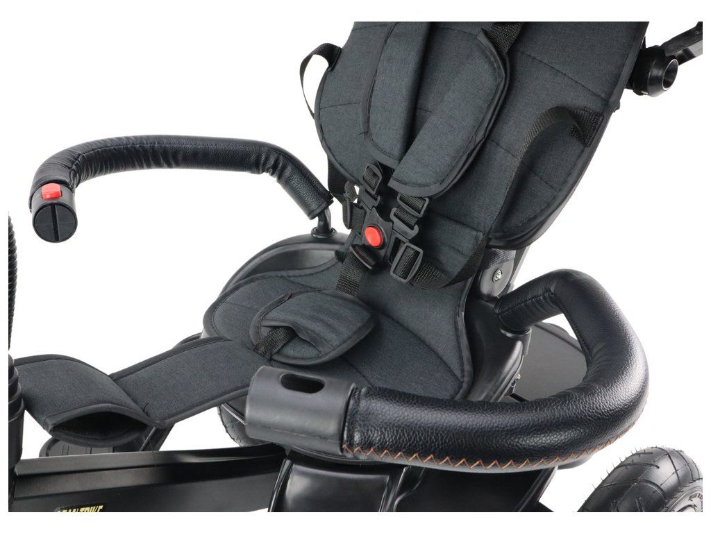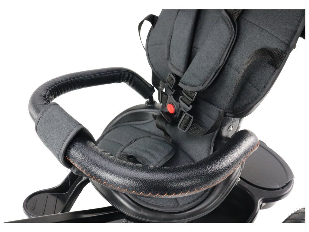 Robustní dětská tříkolka dokonale vyhoví potřebám každého batolete. S modelem PRO550 si vaše dítě zamiluje jízdu na kole a trávení volného času na čerstvém vzduchu, což bude mít pozitivní vliv na jeho vývoj a zdraví. Tříkolku lze různě upravovat, takže roste s vaším dítětem - bez nutnosti výměny výbavy za novou. S rostoucím věkem dítěte je možné odpojit tyč, a umožnit tak batoleti samostatnou jízdu. Kvalitní nafukovací kola zajišťují pohodlnou jízdu a pětibodové bezpečnostní pásy a zámek zadního kola zvyšují bezpečnost dítěte při používání kola.